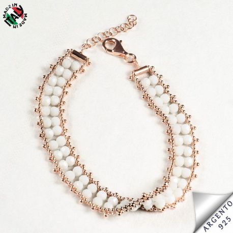 Bracciale con 2 file di cristalli bianchi da 3mm e argento 925 placcato oro rosa, made in Italy.